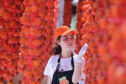 | Hồng treo gió hoàn toàn được sản xuất theo phương pháp tự nhiên. Ảnh: Nhật Anh - TTXVN |