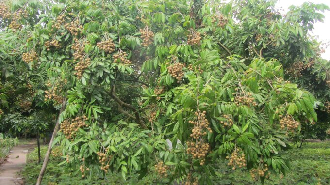 Áp dụng tưới nước phun mưa tự động đã giúp vườn nhãn tăng năng suất thêm 12 - 15%. Ảnh: nongnghiep.vn