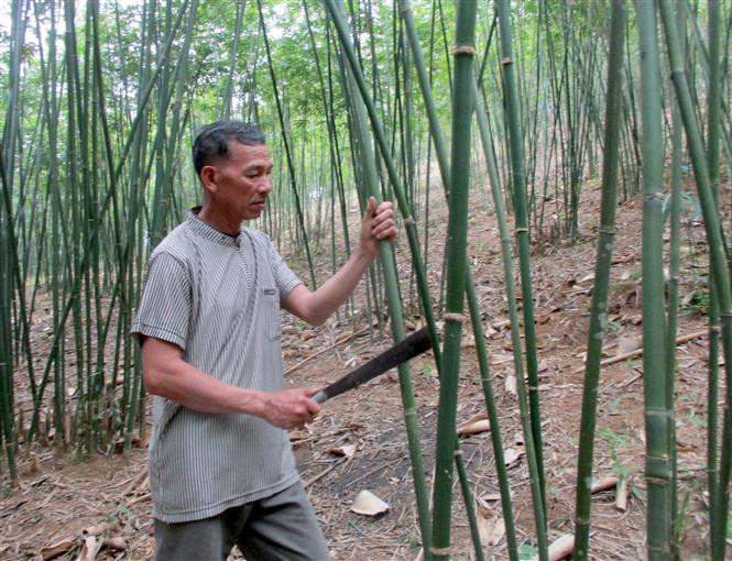 Gia đình ông Vi Văn Piên ở bản Hậu, xã Tam Lư, huyện biên giới Quan Sơn, tỉnh Thanh Hóa thoát nghèo nhờ trồng cây Vầu với thu nhập từ 160 - 200 triệu đồng/năm. Ảnh: Nguyễn Nam - TTXVN