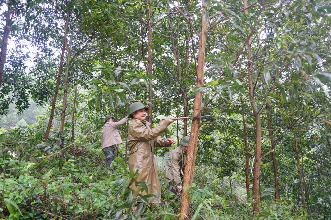 Cán bộ Hạt Kiểm lâm huyện Đồng Hỷ kiểm tra mô hình trồng cây giổi xanh tại xã Cây Thị, huyện Đồng Hỷ. Ảnh:ntm.thainguyen.gov.vn