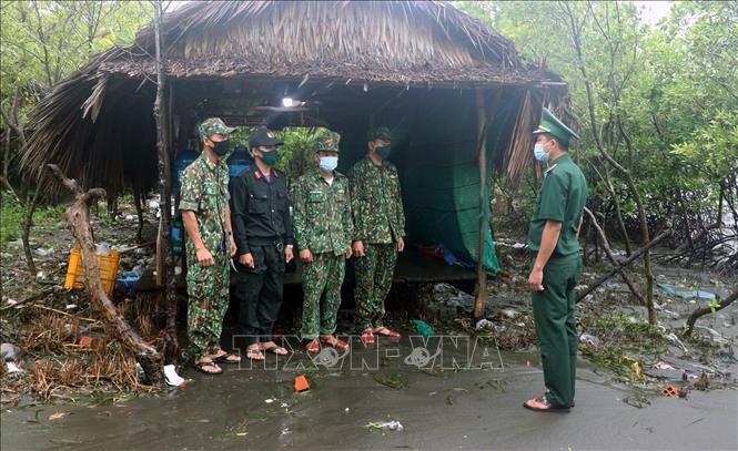 Cán bộ chiến sĩ Đồn Biên phòng cửa khẩu quốc tế Hà Tiên bám chốt làm nhiệm vụ phòng chống dịch COVID-19 trên vùng biên giới. Ảnh: Lê Huy Hải - TTXVN