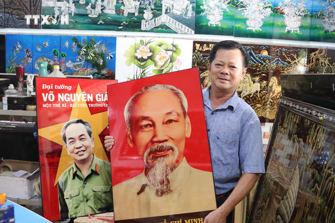 Ông Hoàng Đình Thuận, một người con của làng nghề sơn mài Tương Bình Hiệp đã dành hơn 50 năm vẽ hàng ngàn bức chân dung Bác Hồ bằng chất liệu sơn mài. Ông chia sẻ: Vẽ Bác không chỉ đòi hỏi kỹ năng mà còn cần tình cảm và sự kính trọng sâu sắc. Mỗi bức tranh là sự kết hợp giữa kỹ thuật điêu luyện và tình yêu với Người. Với ông, từng nét vẽ là một hành trình để hiểu và truyền tải tinh thần của vị lãnh tụ vĩ đại đến với công chúng.