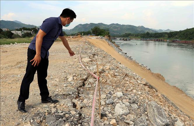 Một đoạn kè chống sạt lở bờ sông Lô đang được thi công. Ảnh Vũ Quang – TTXVN