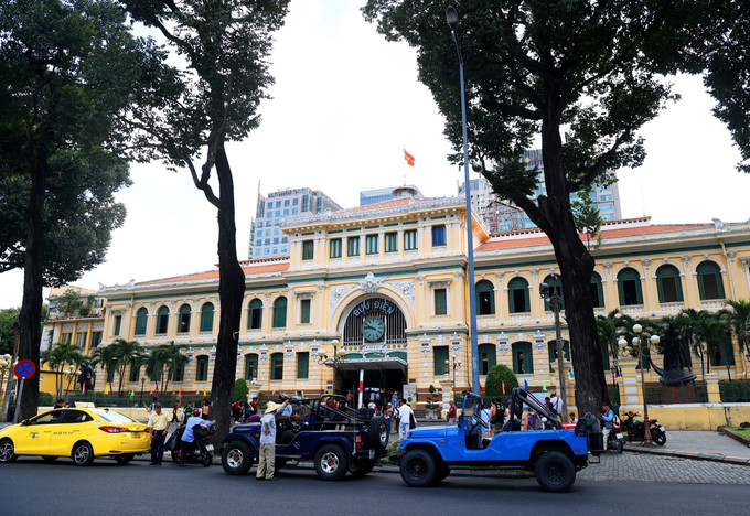 Bưu điện Trung tâm, công trình kiến trúc nổi tiếng tại trung tâm Thành phố Hồ Chí Minh, là điểm đến thu hút nhiều đoàn khách quốc tế đến tham quan. Ảnh: Hồng Đạt - TTXVN