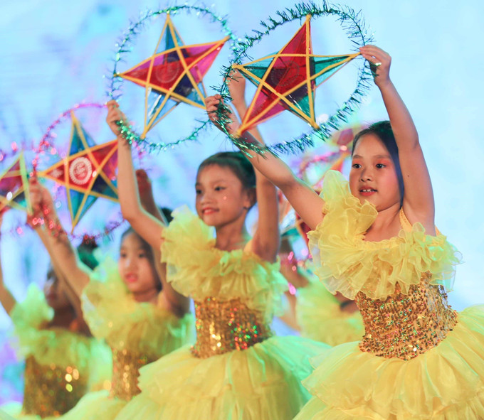 Các em thiếu nhi biểu diễn văn nghệ trong lễ khai mạc. Ảnh: Thanh Tùng – TTXVN