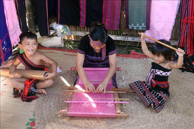 Trình diễn dệt thổ cẩm của người Cơ-tu tại ngày hội. Ảnh: Trần Lê Lâm - TTXVN