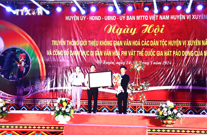 Đặc biệt, tại lễ khai mạc, huyện Vị Xuyên đón nhận công bố danh hiệu “Di sản Văn hóa phi vật thể quốc gia hát Páo dung của người Dao” của Bộ Văn hóa, Thể thao và Du lịch.