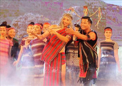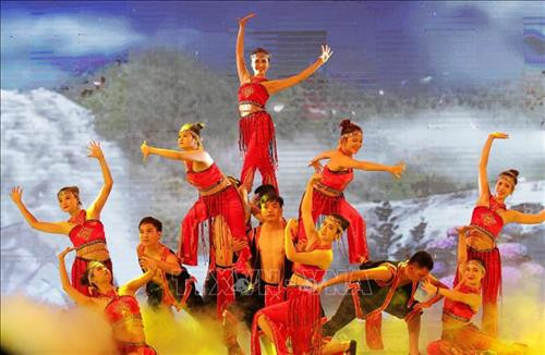 | Chương trình biểu diễn nghệ thuật của các đoàn về dự Ngày hội trong đêm khai mạc. Ảnh: Hồ Cầu - TTXVN |