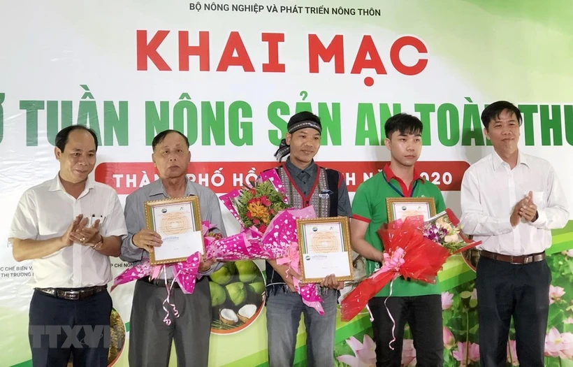 Nhiều sản phẩm địa phương được bình chọn sản phẩm nông sản tiêu biểu tại Phiên chợ Tuần nông sản an toàn thực phẩm năm 2020. Ảnh: Mỹ Phương/TTXVN