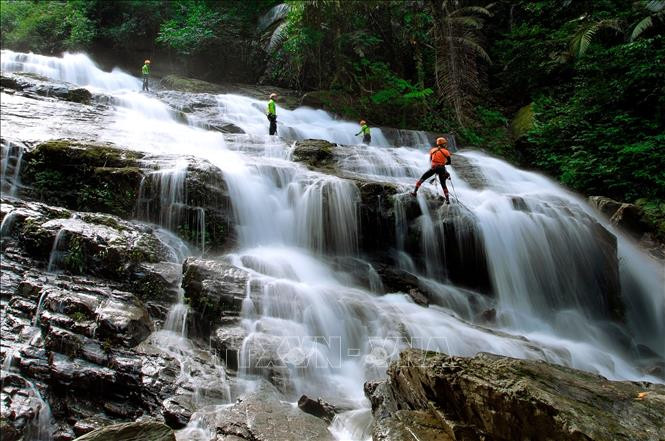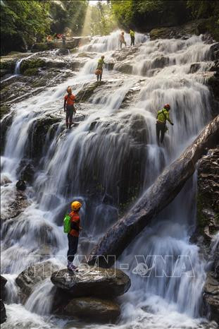Chinh phục những điểm đến hấp dẫn ở Thác Cổng Trời – Bãi Đạn và Khe Nước Trong – Suối Tiên. Ảnh: TTXVN phát