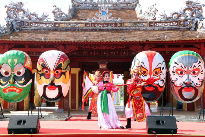Trung tâm Bảo tồn Di tích Cố đô Huế phối hợp với Trung tâm Festival Huế tổ chức chương trình “Ngàn xưa âm vọng” - Lễ rước mặt nạ Tuồng, mang đến một lễ hội đường phố vui tươi và những trải nghiệm thú vị về loại hình nghệ thuật tuồng cổ của Huế. Ảnh: Đỗ Trưởng