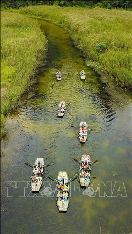 | Du khách khi tham quan Tràng An. Ảnh: Minh Đức - TTXVN |