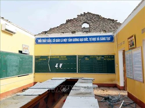 | Trường THCS Tân Cương, thành phố Thái Nguyên bị hư hỏng nặng do mưa dông đêm 8/5/2020. Ảnh: Quân Trang/TTXVN |