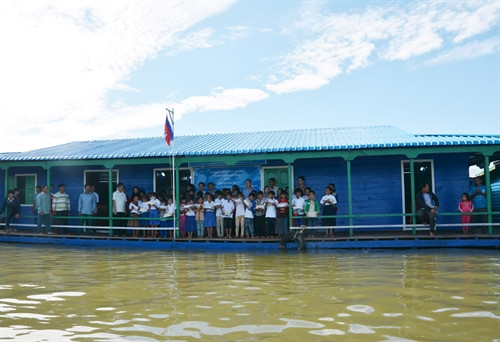 | Ngôi trường nhà bè được xây dựng trên Biển Hồ. Ảnh: Phan Minh Hưng - TTXVN |