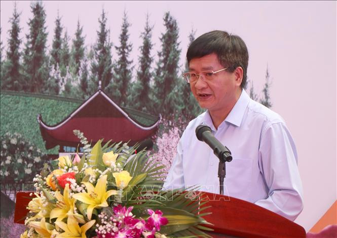 Chủ tịch UBND tỉnh Điện Biên Lê Thành Đô phát biểu tại buổi lễ. Ảnh: Xuân Tiến - TTXVN