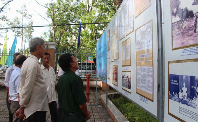 Người dân huyện Long Mỹ xem lại hình ảnh về cuộc đời hoạt động của Bác Hồ tại Khu di tích. Ảnh: Hồng Thái - TTXVN