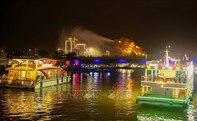 Du khách đến Đà Nẵng được tặng vé miễn phí thưởng ngoạn sông Hàn về đêm. Ảnh: TTXVN