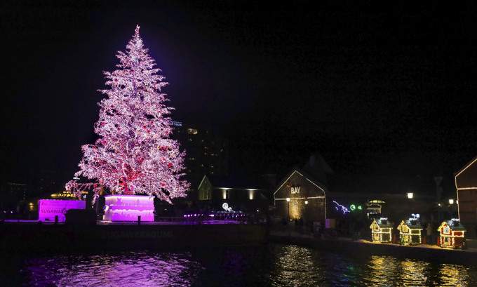 Cây thông Noel cao 20 mét được trang trí 150.000 bóng đèn led tại Hokkaido, Nhật Bản. Ảnh: Kyodo/TTXVN