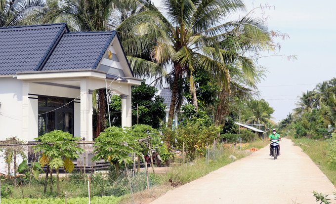 Đường giao thông và nhà dân xây dựng khang trang ở xã nông thôn mới Thạnh Lộc, huyện Châu Thành (Kiên Giang). Ảnh: Lê Huy Hải - TTXVN