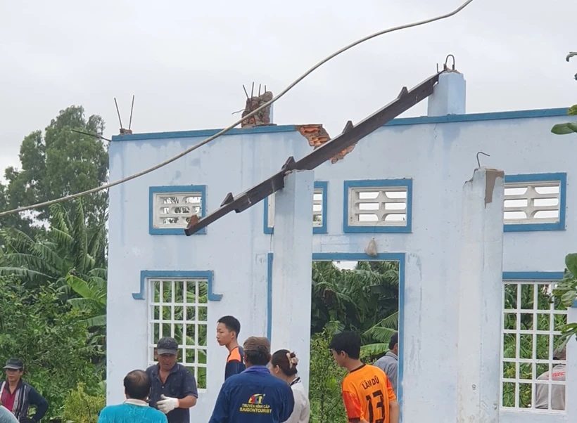 Mưa lớn, dông, lốc làm đổ sập nhà ở của người dân ở ấp Phước Chung, xã Mong Thọ B, huyện Châu Thành (Kiên Giang). Ảnh: TTXVN phát