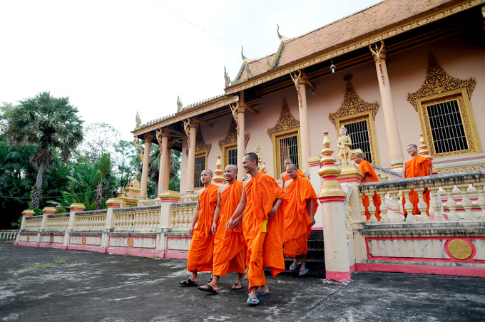 Các Chư Tăng Khmer trong khuôn viên chùa Kh’Leang. Ảnh: An Hiếu
