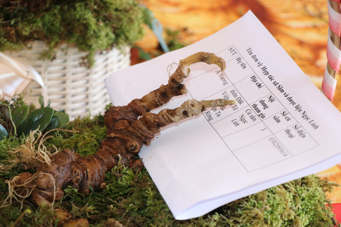 Củ sâm Ngọc Linh được bà Y Bắp (Hợp tác xã Đăk Viên, xã Đăk Na, huyện Tu Mơ Rông) mang đi dự thi tại Cuộc thi sâm Ngọc Linh. Ảnh: Khoa Chương – TTXVN