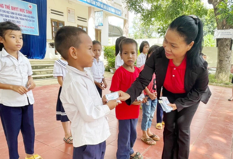 Trao tặng thẻ bảo hiểm y tế cho học sinh có hoàn cảnh khó khăn. Ảnh: baokontum.com.vn