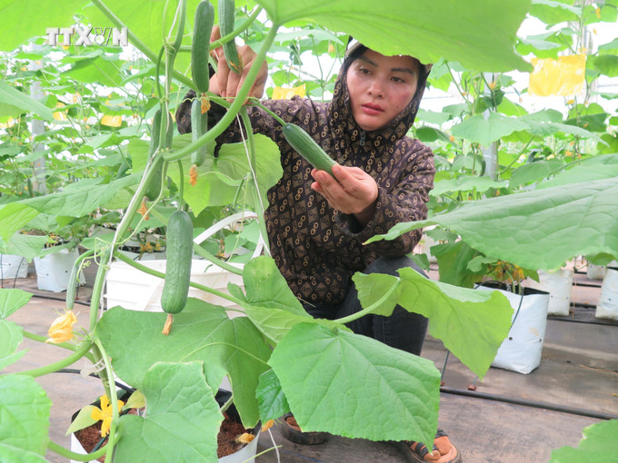 Bà Phan Thị Mai Hương, chủ vườn Hương Nguyên Garden tại thị trấn Măng Đen, huyện Kon Plông cho hay, vườn có diện tích 0,5 ha trồng các loại nông sản như cà chua bi, dưa leo bao tử, dưa hấu táo, ớt trái cây... Toàn bộ diện tích trên được trồng trong nhà kính, ứng dụng khoa học kỹ thuật, công nghệ cao như tưới tiết kiệm, tưới nước hẹn giờ vào sản xuất.