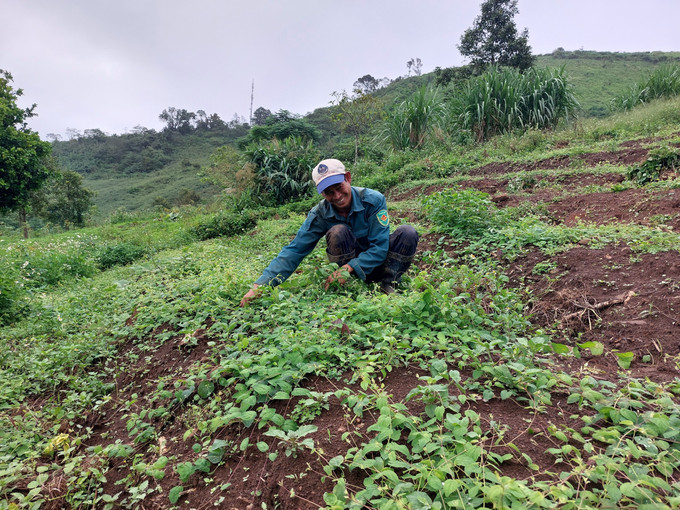 Hơn 1 héc ta sâm dây được anh A Nghìn (làng Đăk Mông, xã Đăk Trăm, huyện Đăk Tô, tỉnh Kon Tum) chuyển đổi từ diện tích trồng mì kém hiệu quả. Ảnh: Khoa Chương - TTXVN
