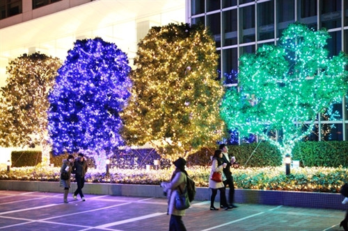 Đêm đông Tokyo với con đường, tòa nhà, hàng cây lung linh những sắc màu huyền diệu đã trở thành điểm vui chơi tham quan hấp dẫn cho những gia đình, khách du lịch và là điểm hẹn hò lý tưởng cho các đôi tình nhân đón Năm mới tại Tokyo.