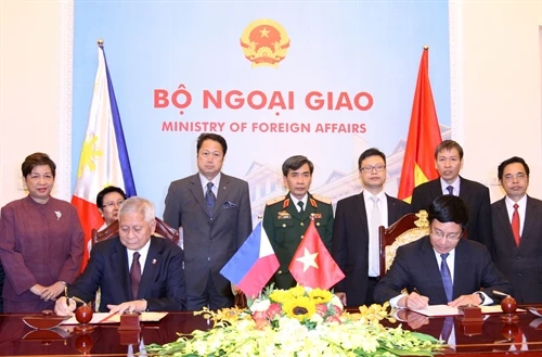 3. Ngày 21/10/2015, tại Hà Nội, Phó Thủ tướng, Bộ trưởng Bộ Ngoại giao Phạm Bình Minh và Bộ trưởng Ngoại giao Philippines Albert Del F.Rosario đồng chủ trì Kỳ họp lần thứ tám Ủy ban hợp tác song phương Việt Nam - Philippines cấp Bộ trưởng Ngoại giao. Ảnh: Thống Nhất-TTXVN