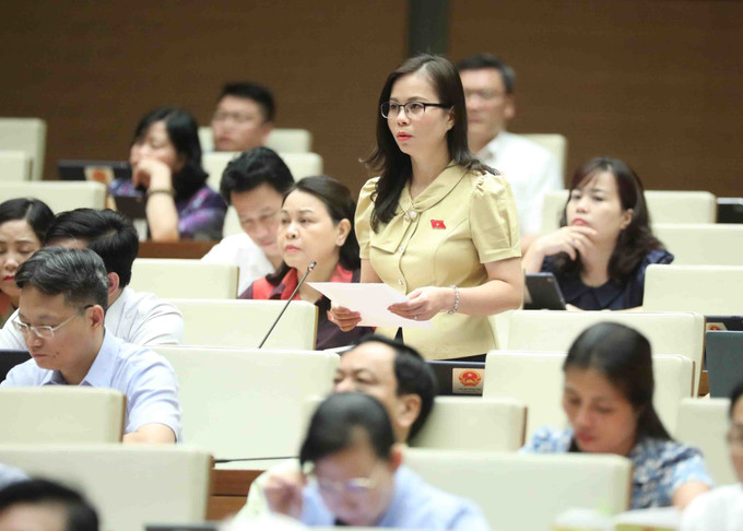 Đại biểu Quốc hội tỉnh Lạng Sơn Chu Thị Hồng Thái đặt câu hỏi chất vấn. Ảnh: Minh Đức – TTXVN