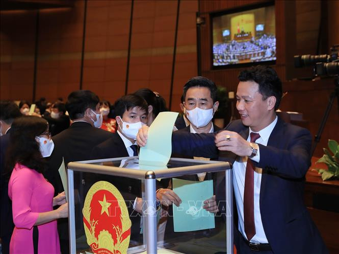 Các đại biểu Quốc hội bỏ phiếu bầu Quốc hội bầu các Phó Chủ tịch Quốc hội khóa XV. Ảnh: Trọng Đức - TTXVN