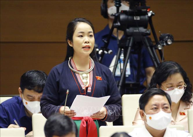 Đại biểu Quốc hội tỉnh Yên Bái Triệu Thị Huyền phát biểu ý kiến. Ảnh: Doãn Tấn – TTXVN