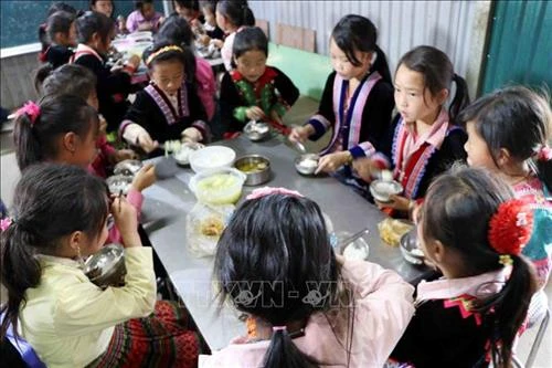 | Trường Phổ thông dân tộc bán trú Tiểu học Mù Sang thuộc xã Mù Sang, huyện Phong Thổ có 216/388 em học sinh đang ăn, ở bán trú tại trường. Ảnh: Công Tuyên-TTXVN |