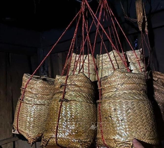 Những chiếc câm cơm được đồng bào dân tộc Thái đan lát tỉ mỉ, công phu. Ảnh: Nguyễn Oanh - TTXVN