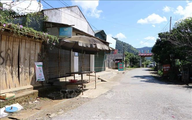 Người dân xã Bản Giang, huyện Tam Đường, tỉnh Lai Châu tuyên thủ nghiêm ngặt để phòng chống dịch COVID-19 sau khi phát hiện các ca dương tính trong cộng đồng. Ảnh: Nguyễn Oanh-TTXVN.
