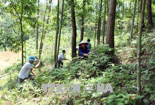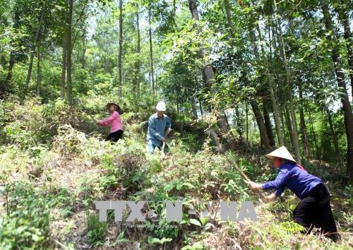 | Người dân khu 9, thị trấn Than Uyên, thường xuyên kiểm tra làm cỏ, phát quang dọn thực bì phòng chống cháy rừng. Ảnh: Quý Trung – TTXVN |