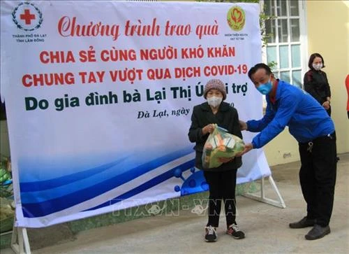 | Trao quà cho người có hoàn cảnh khó khăn thành phố Đà Lạt. Ảnh: Đặng Tuấn – TTXVN |
