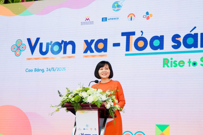 Phát biểu tại sự kiện, bà Nguyễn Thị Tuyết, Giám đốc Bảo tàng Phụ nữ Việt Nam cho biết: “Là đơn vị trực thuộc Hội Liên hiệp Phụ nữ Việt Nam, trong nhiều năm qua, Bảo tàng Phụ nữ Việt Nam luôn tích cực triển khai các hoạt động truyền thông thuộc Dự án 8, đồng hành cùng phụ nữ và trẻ em dân tộc thiểu số trong hành trình thúc đẩy bình đẳng giới. Sự kiện Vươn xa - Tỏa sáng năm nay là sự tiếp nối đầy ý nghĩa của hành trình đó, nhằm tạo nên một không gian truyền cảm hứng, nơi những câu chuyện vượt khó, những ước mơ vươn lên được lắng nghe và lan tỏa rộng rãi trong cộng đồng. Đây không chỉ là một hoạt động truyền thông, mà còn là lời khẳng định cam kết của chúng tôi trong việc đồng hành cùng cộng đồng, đặc biệt là đồng bào vùng cao, vì một xã hội phát triển bền vững”.