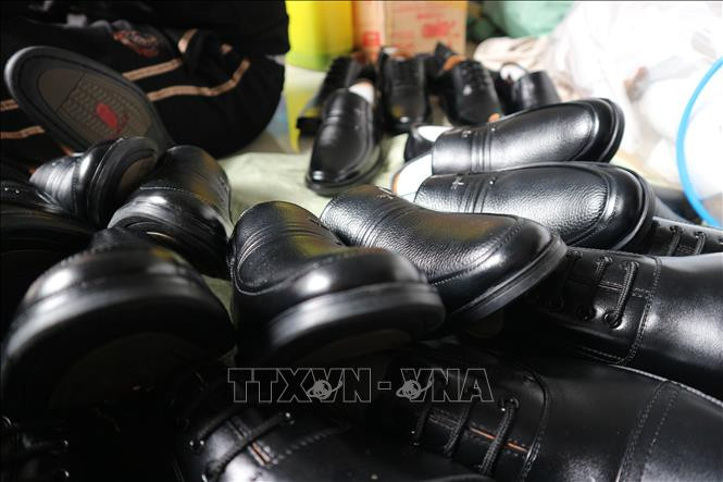 Những đôi giầy nam đang chờ xuất bán ra thị trường dịp Tết nguyên đán Tân Sửu 2021. Ảnh: Mạnh Khánh - TTXVN
