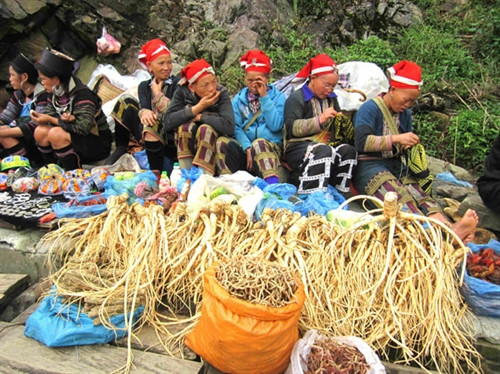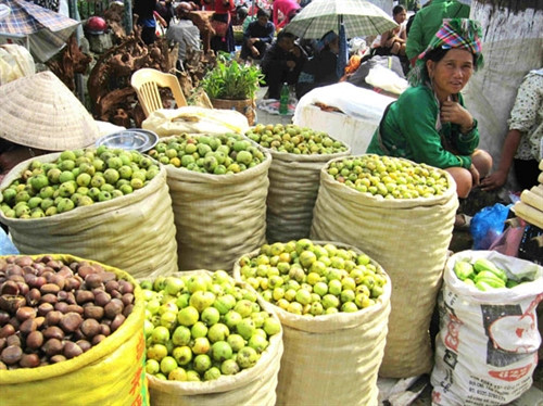 Thu về, sắc màu thổ cẩm ở chợ phiên Tây Bắc đẹp đến lộng lẫy. Những mảng màu được hòa quyện trong những chiếc váy thổ cẩm, khăn thêu, túi nải. Những cô sơn nữ Mông, Dao đẹp duyên dáng trong trang phục thổ cẩm tươi cười xuống chợ. Nắng thu vàng tỏa vào sắc màu thổ cẩm khiến cho vẻ đẹp thổ cẩm trở nên rực rỡ hơn. Chợ phiên Tây Bắc vào mùa thu thoang thoảng hương thơm của hoa trái và các loại đặc sản chỉ có ở những vùng đất này. Đó là sắc vàng ruộm của những trái sơn tra được đồng bào Mông hái từ trên núi cao mang xuống chợ phiên. Những ống cơm lam dẻo thơm, mùi rượu ngô nồng nàn, những mẻ cốm thơm nức gói trong lá dong, những bó măng rừng tươi nõn nà, những chai mật ong rừng đặc sánh, vàng ươm làm nức lòng du khách. Đó là những sản vật chỉ có vào mùa thu, chỉ có ở những bản Mông, bản Tày theo đồng bào xuống chợ. Có lẽ phải thưởng thức vào mùa thu tại chợ phiên mới cảm thấy vị ngon của những món quà đậm đà dư vị này.