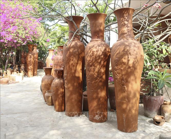 Sản xuất gốm lục bình độc đáo của hợp tác xã gốm Chăm Bàu Trúc (thị trấn Phước Dân, huyện Ninh Phước, tỉnh Ninh Thuận). Ảnh: Nguyễn Thành – TTXVN