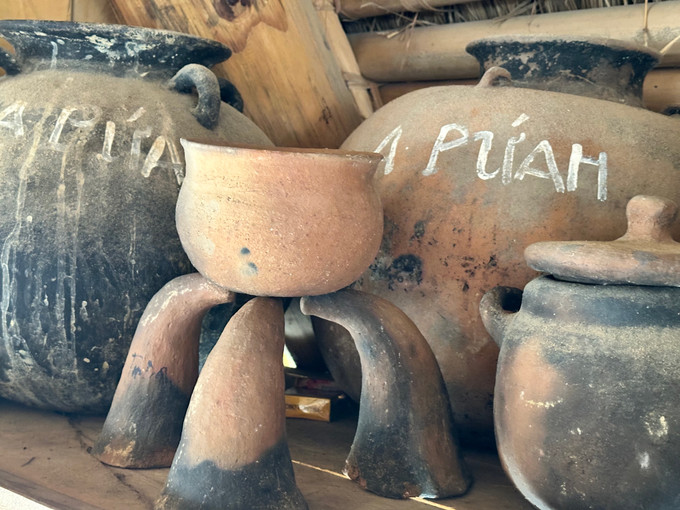 Bên nong lúa phơi dưới nắng ấm vùng biên, dù chẳng nhớ nổi nghề làm gốm có từ bao giờ nhưng cụ Bhling Truốh vẫn có thể kể lại ký ức của làng gốm cổ một thời. Khi cụ “nhìn thấy mặt trời”, dân làng đã biết làm gốm. Nhỏ là những cái nồi đất, nồi nước, lớn hơn một chút là những chum đựng lúa, đựng thổ cẩm.