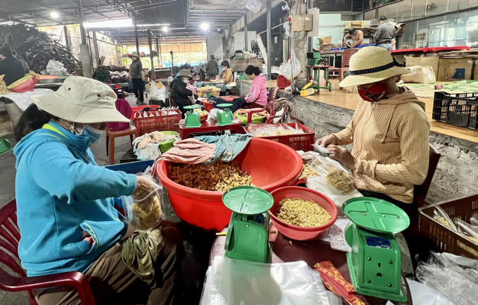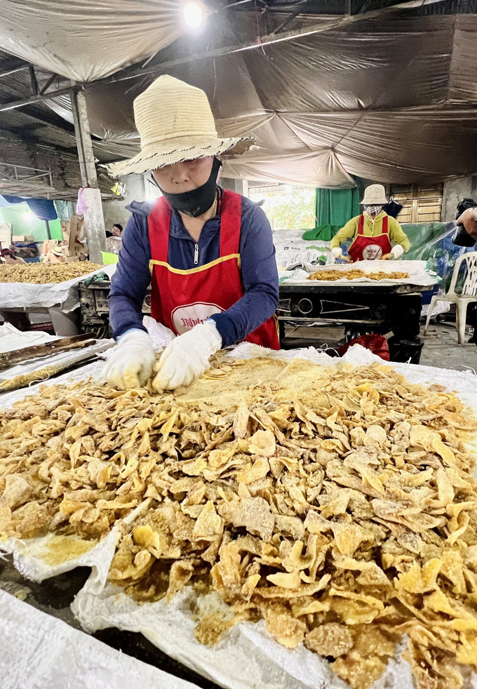 Bà Võ Thị Tâm, chủ lò mứt gừng Tuấn Tâm cho biết, cơ sở hiện có khoảng 50 nhân công làm việc liên tục để sản xuất mứt gừng, kịp thời cung ứng cho thị trường dịp Tết Nguyên đán.