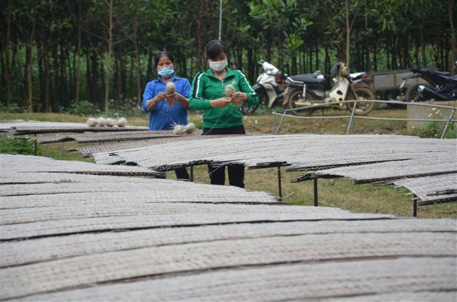 Phơi miến tại xã Cẩm Bình, huyện Cẩm Thủy. Ảnh: Hoa Mai - TTXVN