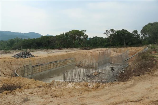 Hạng mục thân đập hồ Yên Ngựa thi công dở dang. Ảnh: Anh Dũng - TTXVN