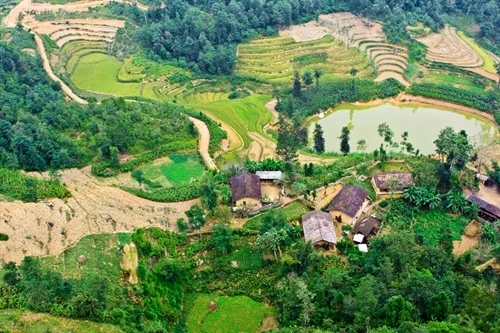 | Bản Lô Lô Chải trong sương sớm. Ảnh TTXVN |