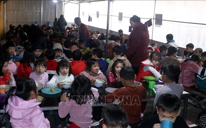 Bữa ăn trưa đảm bảo sức khỏe cho học sinh tiểu học Sa Pa (Lào Cai) trong những ngày giá rét. Ảnh: Quốc Khánh - TTXVN