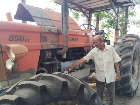 Dù không qua bất cứ trường lớp cơ khí nào nhưng lão nông Võ Văn Ten vẫn có thể sửa chữa được những hư hỏng nhỏ ở chiếc máy cày của gia đình. Ảnh: hoinongdan.org.vn